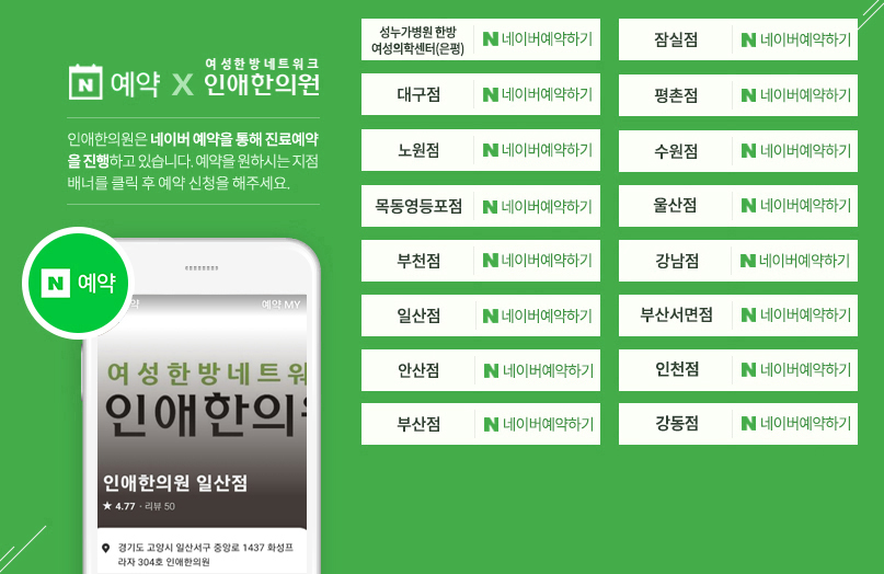 각 지점 예약하기 버튼을 클릭하시면 예약 페이지로 바로 연결됩니다.
